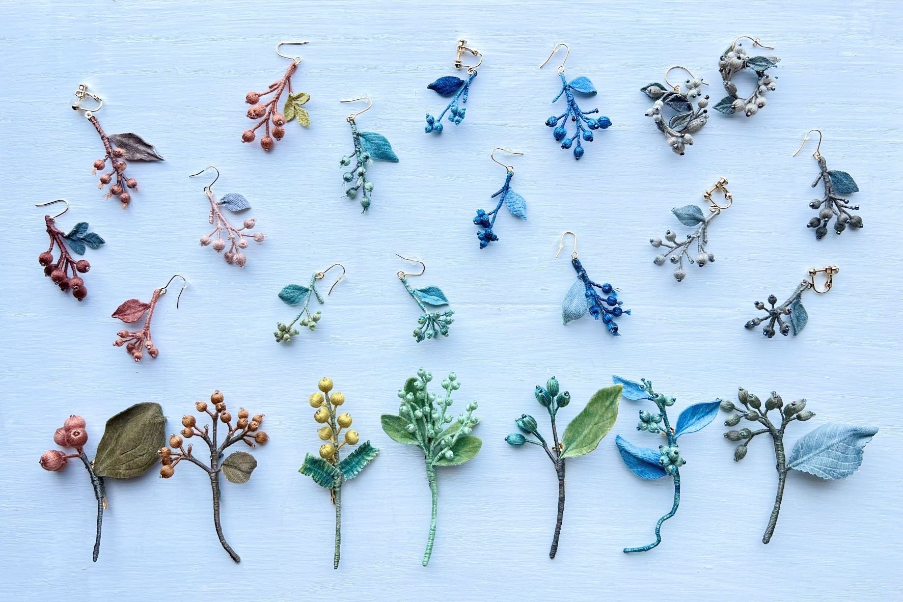 宮古島特産の苧麻(ちょま)にホタルガラスを組み合わせたアクセサリー