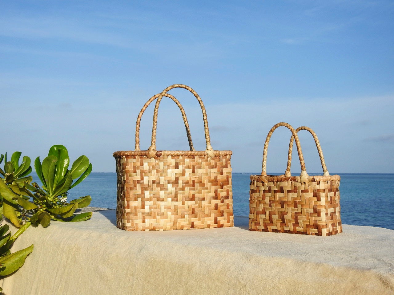 石垣島の太陽をたっぷり浴びたタコノキの葉で作ったかごバッグは軽くて丈夫