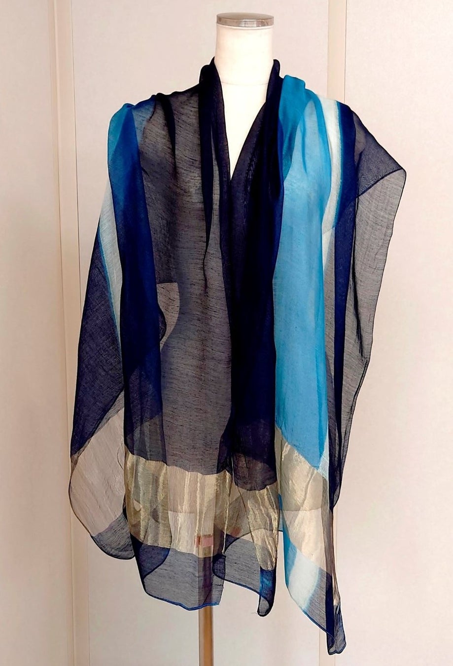 伝統的な天然灰汁発酵建ての藍液で美しいグラデーションに