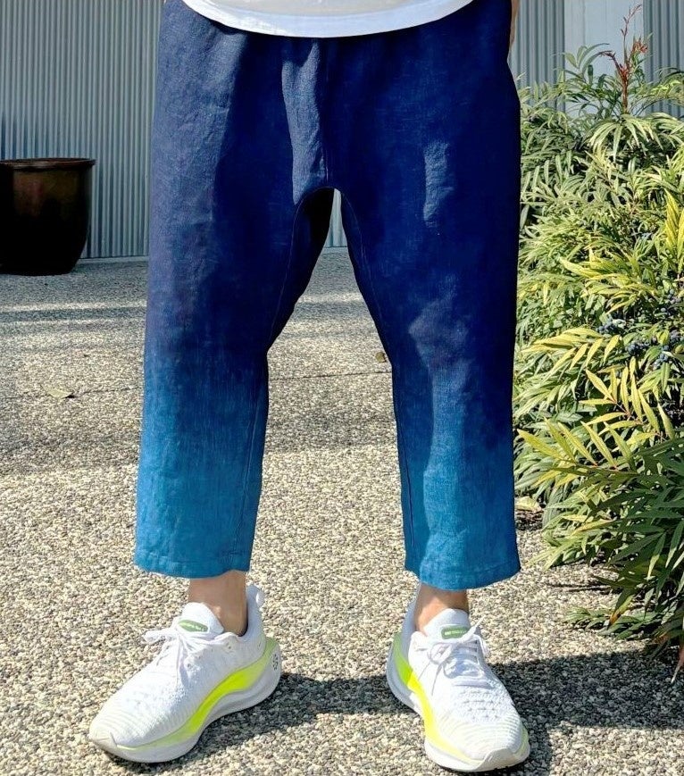 徳島産阿波藍で染めた藍色のトーンが美しいサルエルパンツ