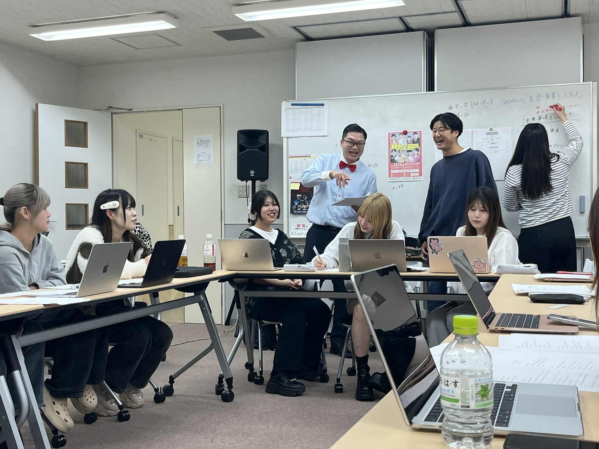 そこからさらに学生たちが意見を出し合い、笑いの構成を練り上げていきました。まさに“教室がそのまま制作現場”となるリアルな学びの授業プロジェクトです。