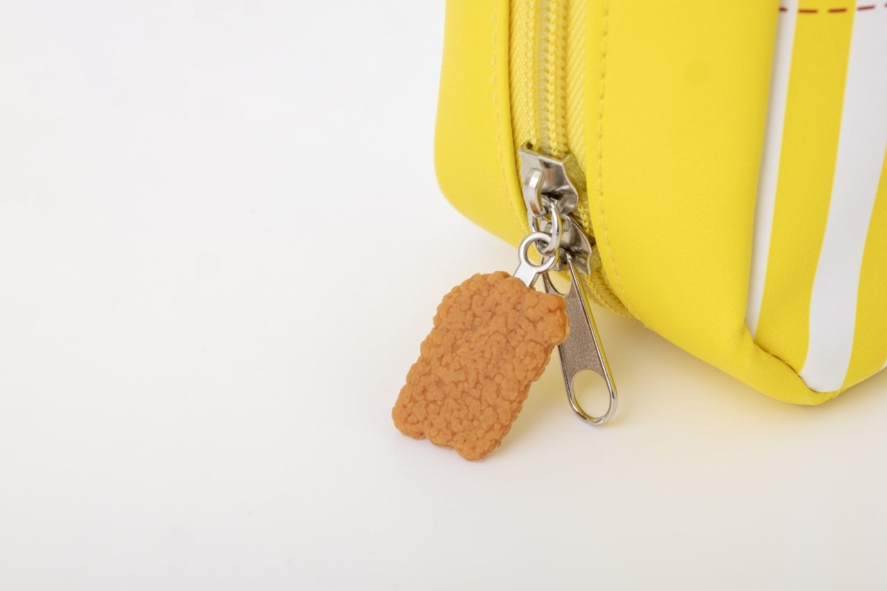 エコバッグは、スマホが入る内ポケット付きで、マチが広いので買い物袋だけでなくランチバッグとしても活躍! ファミチキサイズにまで小さくたためるので、持ち歩きに便利です。ポーチは、整理整頓に便利な5つのポケット付きで、文具入れやコスメ入れにピッタリ。リアルなファミチキ形チャームが付いています。