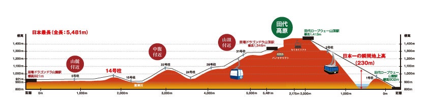 【標 高】山麓駅:802m 山頂駅:1,413m 【乗車時間】片道約10分