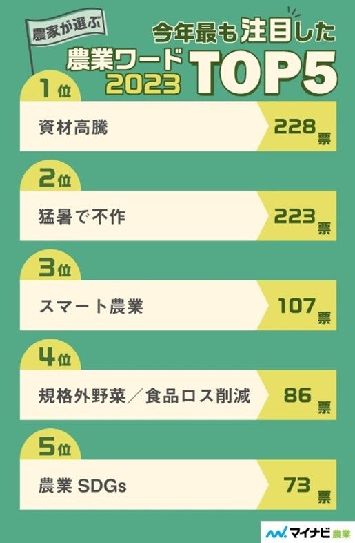マイナビ農業、「農家が選ぶ今年最も注目した農業ワード2023」を発表