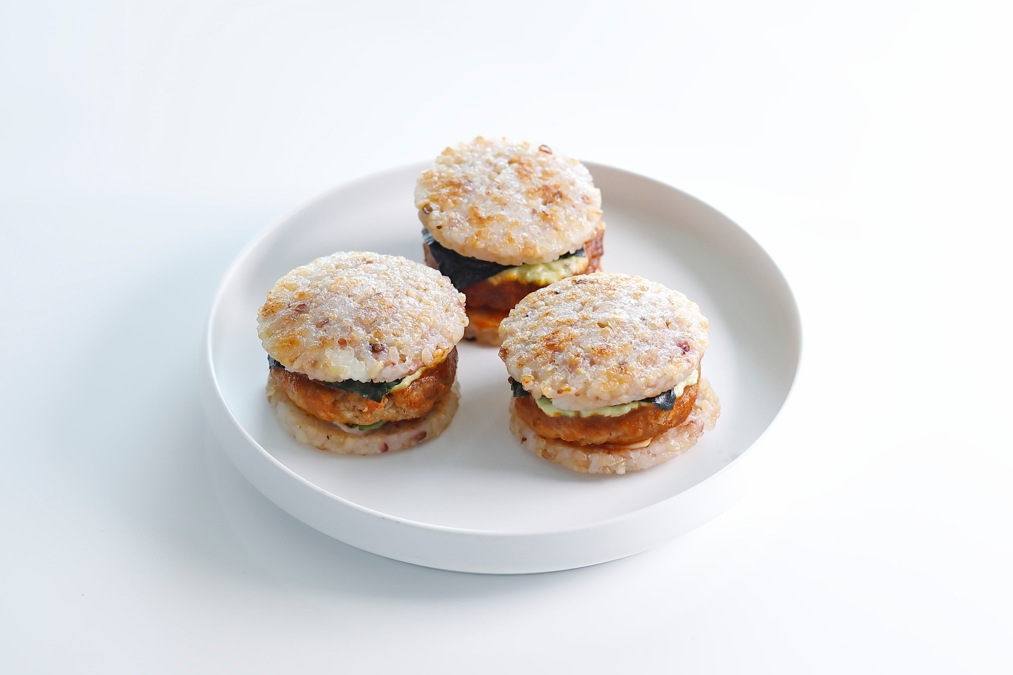 大豆の成分から抽出した植物性たんぱく質を肉に見立てた「大豆ミート」のパティを、じっくりと寝かせた旨味の凝縮したソースを絡めました。栄養価の高いシリアルを使用したライスバンズをアクセントに焼き海苔を挟んだヘルシーバーガー。肉の"代わり"を超えた「大豆ミート」を使用することで健康面に配慮しながらも美味しい仕上がりに。