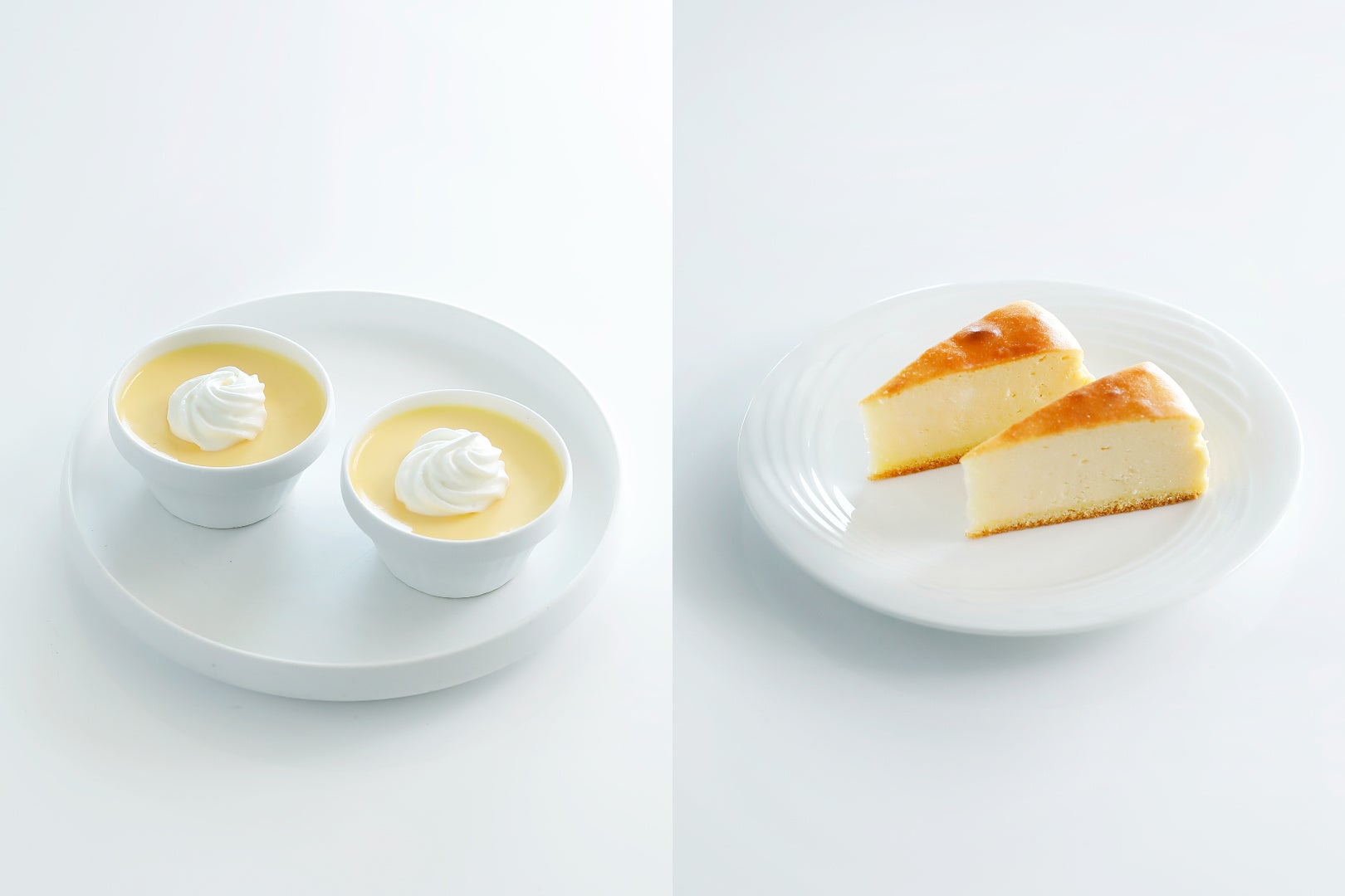 豆乳クリーム、豆乳チーズをメインの材料としたしっとりとした口当たりが特徴のバスク風チーズケーキ左:豆乳ヘルシープリン