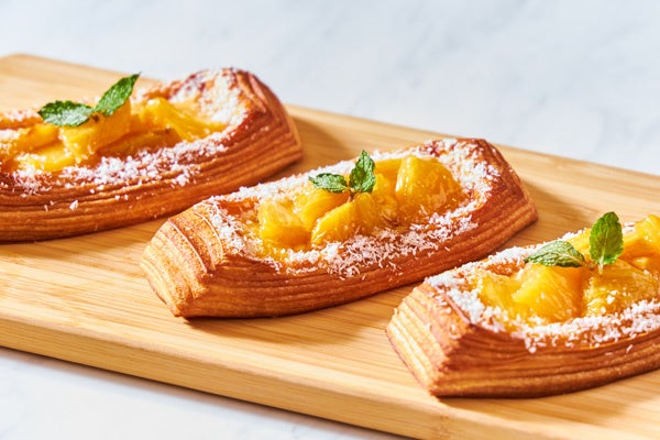 時季に合わせて定期的に味を変えてご提供しているデニッシュは、昨年から夏期限定商品として登場した「アナナス」(パイナップル)を今年もご用意いたします。低温でじっくりフランベし、ブランデーの甘みや香りをつけたアナナスと、爽やかなヨーグルトクリーム、サクサクのデニッシュ生地が相性抜群な逸品です。甘すぎずさっぱりとしたトロピカルテイストをお楽しみください。