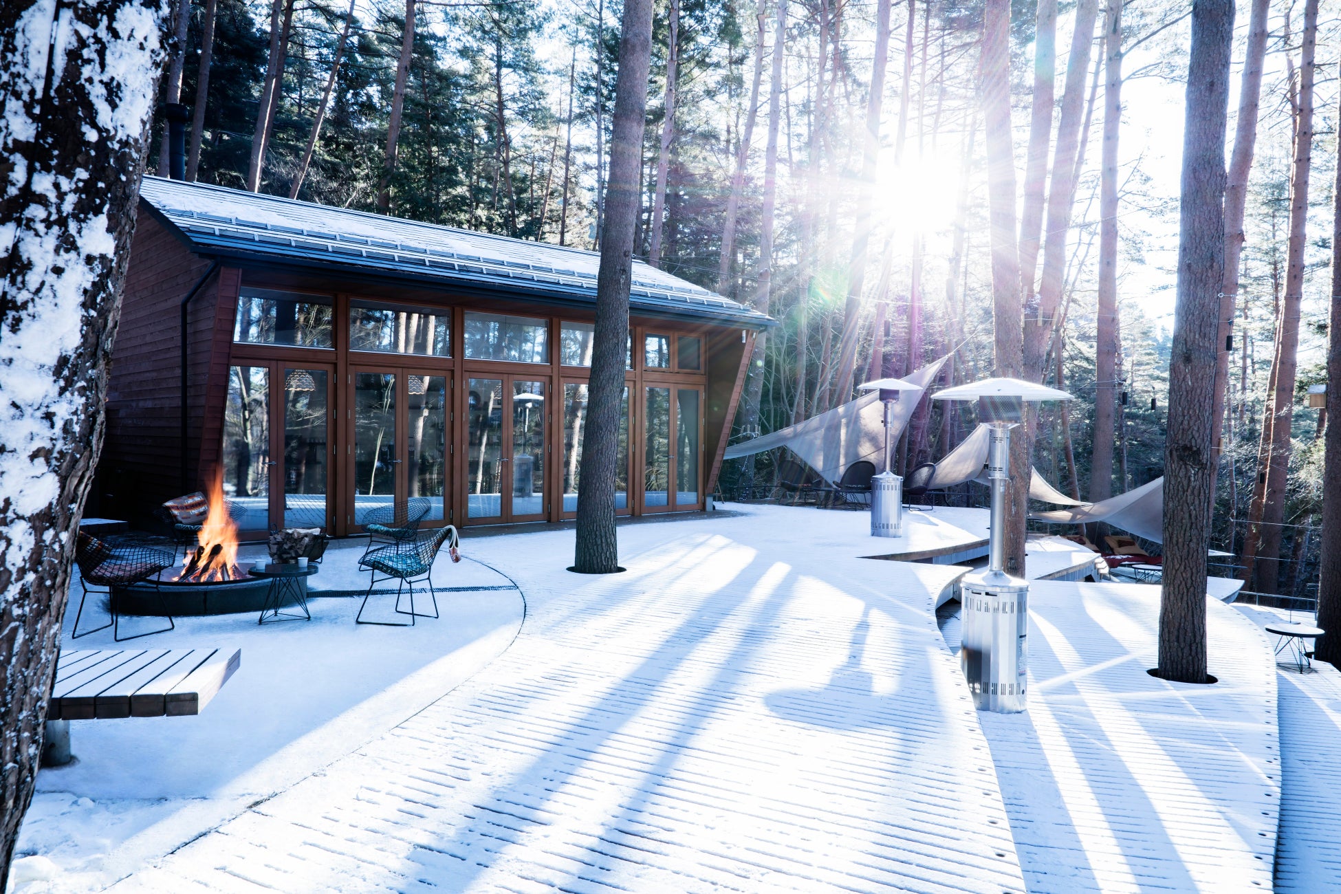 河口湖を望む丘陵に溶け込むように建つ、日本初のグランピングリゾート* 。焚き火を眺めながら過ごすひと時、広大なアカマツの森の中で愉しめる体験型の食事、自然の中で身体を動かす爽快感。常に屋外で快適に過ごせる環境の中、四季を通して新しい価値を提供します。