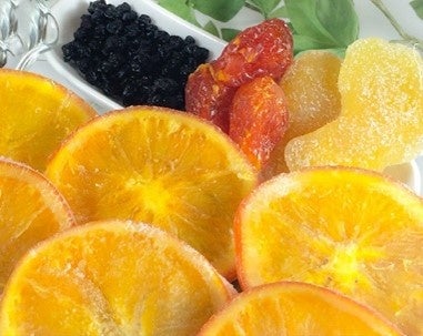 オレンジやブルーベリー、マンゴーなどジューシーなドライフルーツ各種が勢揃い。
