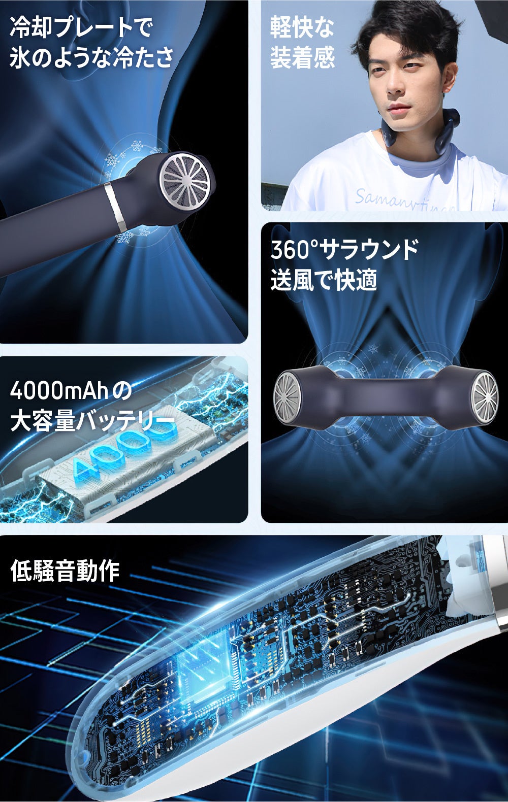 「360°サラウンド送風」技術により頭部から首、背中にかけて徹底的に冷却します。