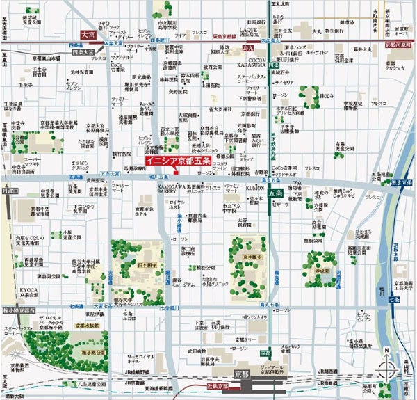 交通:烏丸線「五条」駅2番出口まで徒歩7分、烏丸線「四条」駅5番出口まで徒歩14分、阪急京都線「大宮」駅2A出口まで徒歩15分、阪急京都線「烏丸」駅26番出口まで徒歩16分(5:30~24:00)