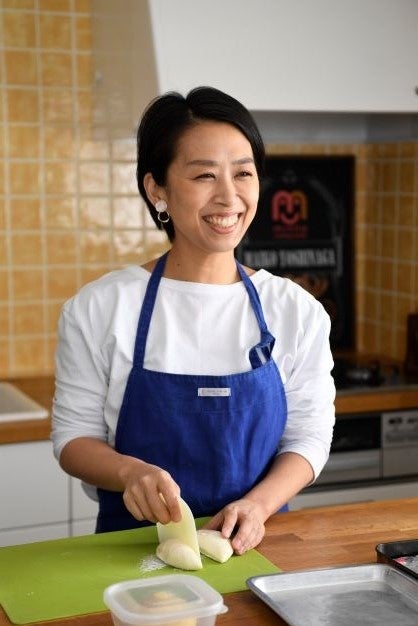兵庫県宝塚市出身。聖心女子大学卒業後、一般企業を経てパンの世界へ。「ごはんを炊くような気持ちで、もっと手軽にパン作りを楽しんで欲しい」と、忙しい人でも毎日焼ける「おうちパン」を考案し大好評に。現在は、オンライン教室のほか、外部での講師と、企業とのレシピ開発や雑誌へのレシピ提供、書籍の出版、コラムの執筆、テレビ出演等幅広く活躍中。You Tube、インスタライブなど、各種動画配信も大人気。著書に『冷蔵庫で作りおきパン いつでも焼きたて』『はじめてでも失敗しない絶対おいしい!おうちパン教室』『スイッチピ!で焼きたて 炊飯器でパンとケーキができちゃった』『作って食べて最高に盛り上がるおそとパン』(すべて弊社)など多数。自身も3人の男の子のママで、子どもや親子対象のパン教室も大人気。