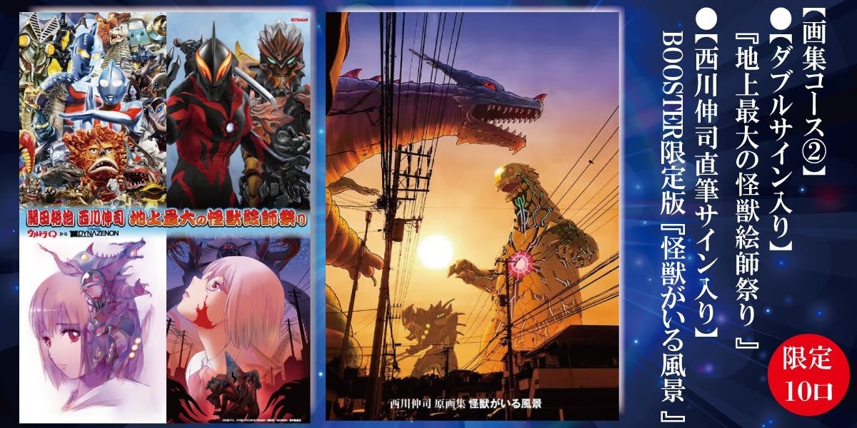 <限定10口>【開田裕治・西川伸司直筆ダブルサイン入り】BOOSTER限定版原画集 「開田裕治と西川伸司 地上最大の怪獣絵師祭り ウルトラQからSSSS.DYNAZENON」 +【西川伸司直筆サイン入り】BOOSTER限定版『怪獣がいる風景』 16,500円(税込)