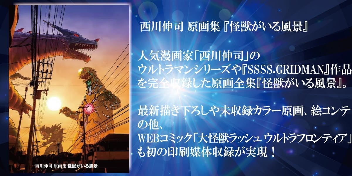 2017年に台北ロンズギャラリーで開催され、夜明け前から押し掛けた熱いファンは通りを埋め、連日100m以上の列ができるなど大成功を収めた「開田裕治 西川伸司 THE ULTRAMAN WORLD」の凱旋企画として、念願であった日本国内での【開田裕治 西川伸司 地上最大の怪獣絵師祭り ウルトラQからSSSS.DYNAZENON】の開催が決定!本原画展の開催を記念して日本が誇る二大怪獣絵師の合同原画集「開田裕治と西川伸司 地上最大の怪獣絵師祭り」BOOSTER限定版出版プロジェクトを立ち上げました。