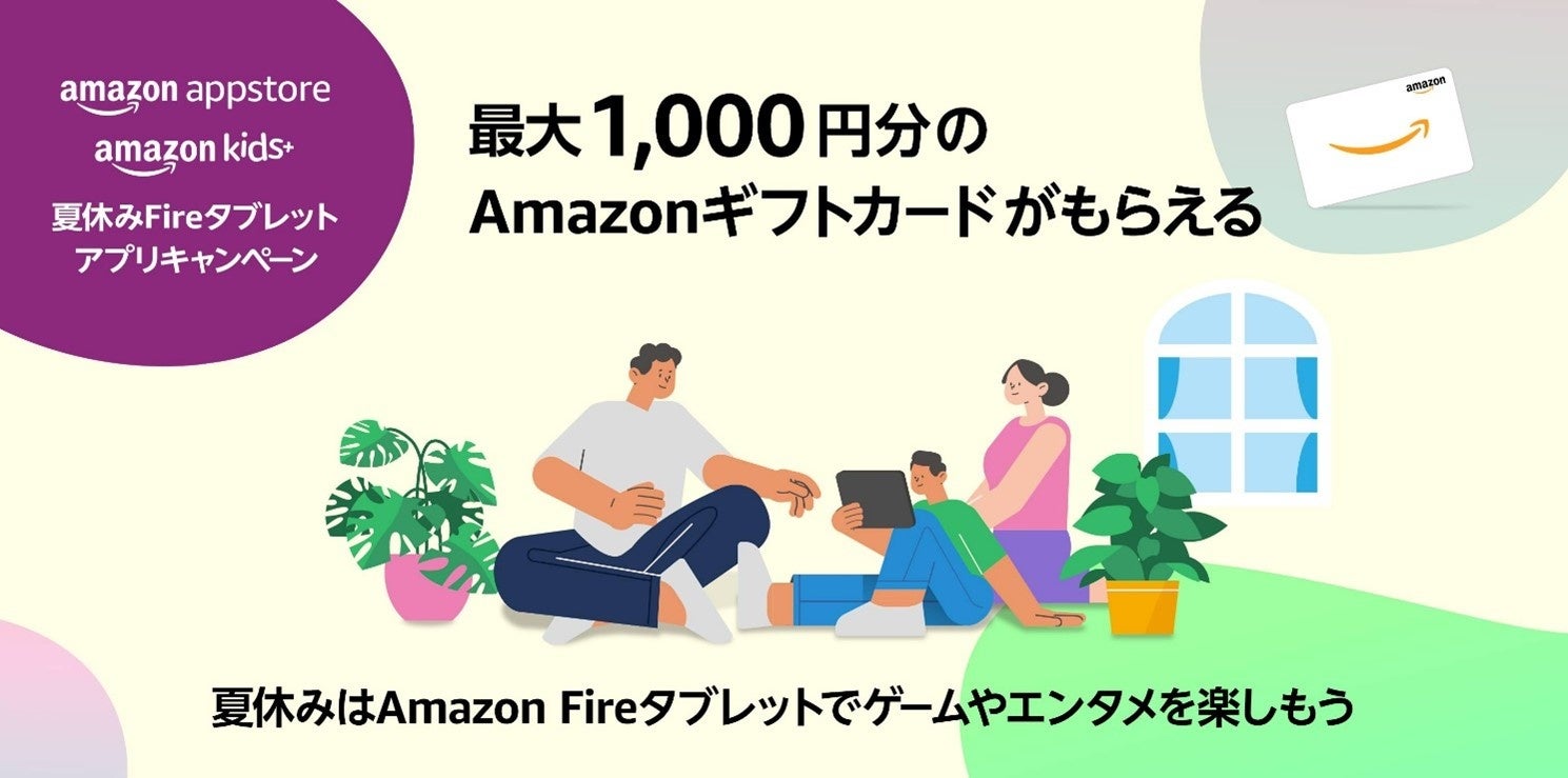 Amazonアプリストア、最大1,000円分のAmazonギフトカードがもらえる「夏休みFireタブレット アプリキャンペーン」を明日8月1日より開催!