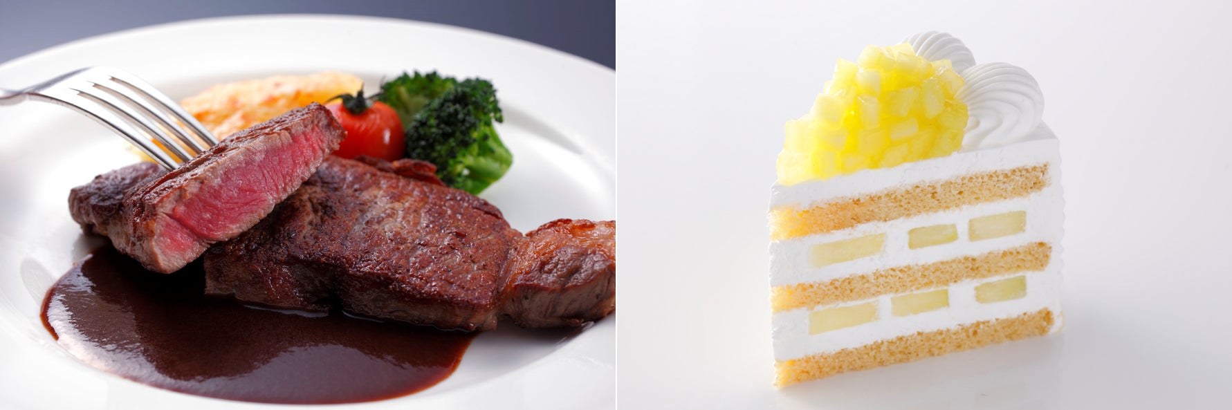 - 1ピース¥1,500超えの究極スイーツに、肉汁ジューシーなサーロインステーキまで!絶品ディナーを堪能