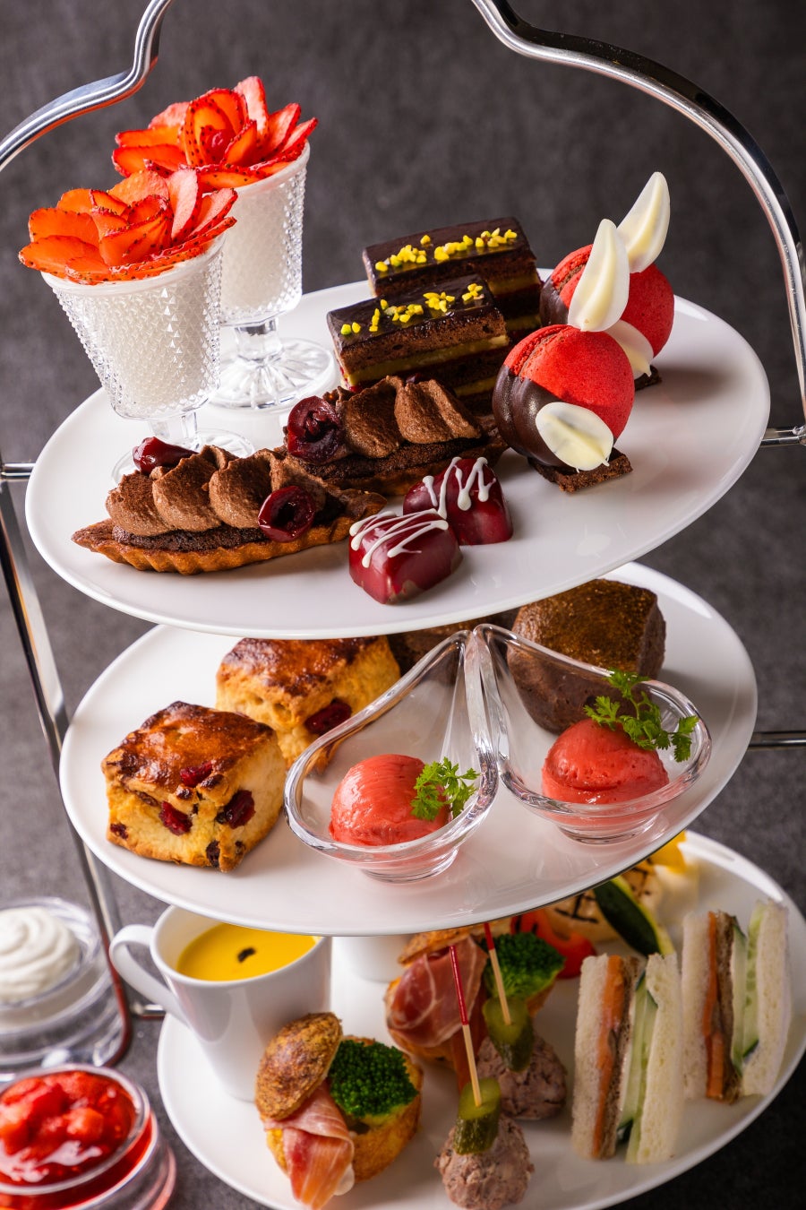 【オリエンタルホテル広島】“心ときめく赤×ショコラの饗演” 赤をテーマにした新アフタヌーンティーが登場