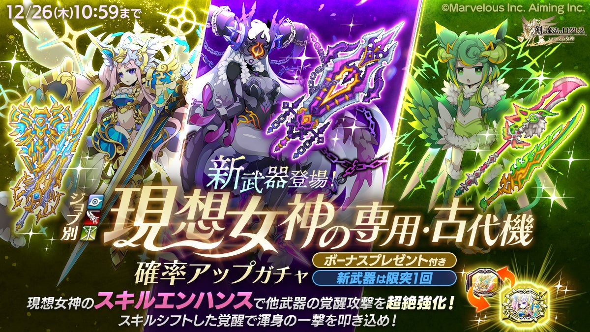 ■「ジョブ別 現想女神の専用・古代機確率アップガチャ」販売中!