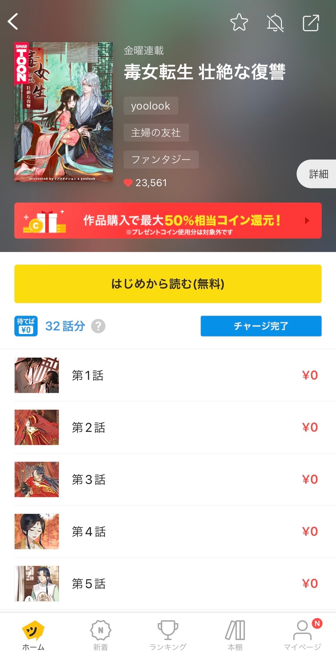 1話~5話まで無料、6話~最新話までは「待てば¥0」にて公開