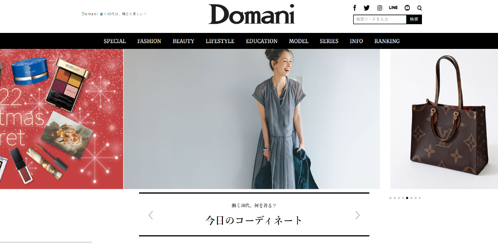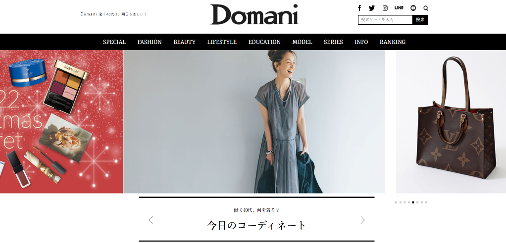 ・Domani専属読者モデル「Domanist」が執筆する記事が人気です。実際に洋服やコスメを試した感想レポート記事や、話題の商品やサービスのレビューなどの掲載ができます。