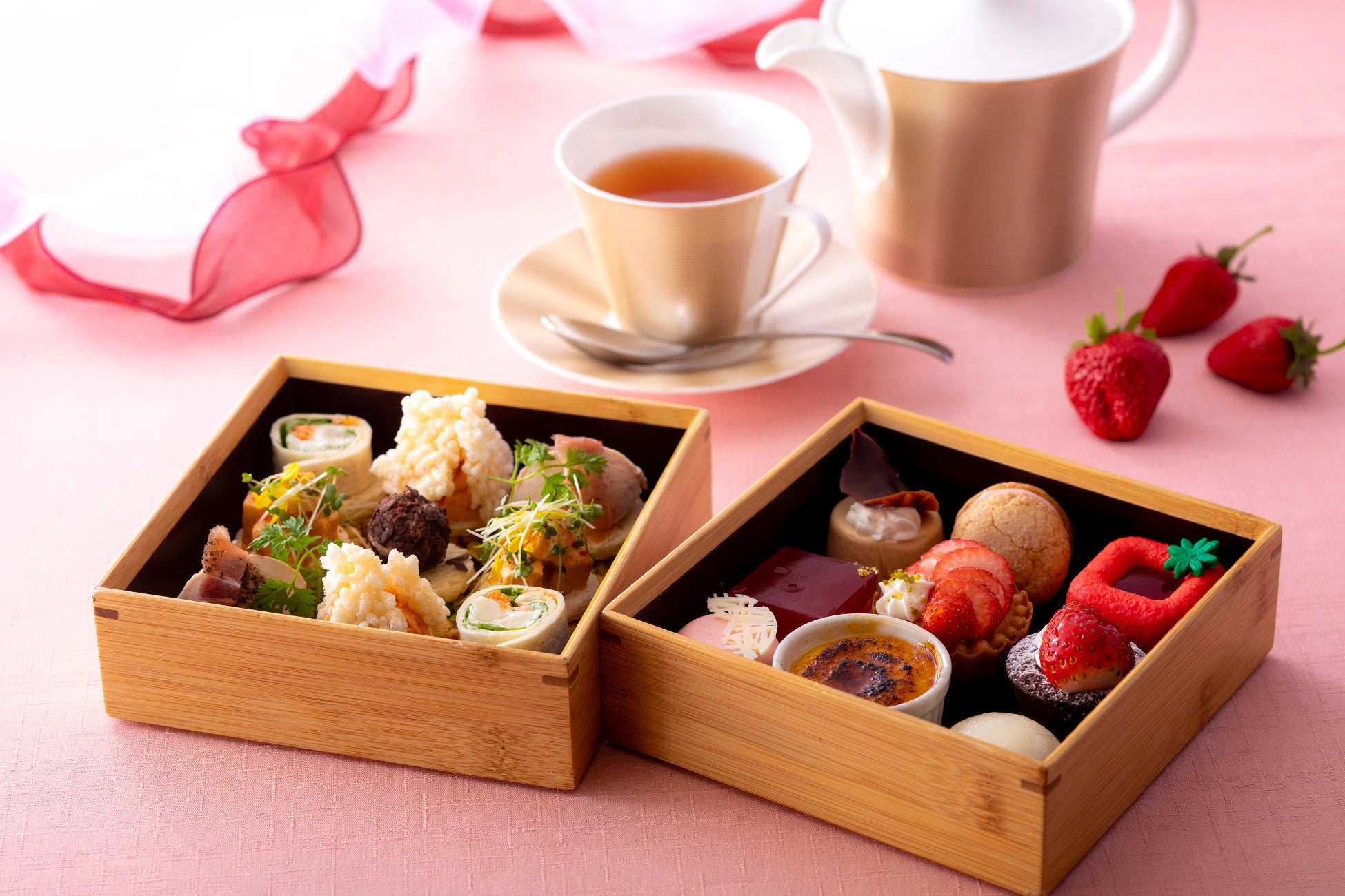 「ストロベリーアフタヌーンティーセット」は、旬の苺を存分にお愉しみいただける個性豊かな9種のスイーツとセイボリー9品をご用意しました。苺タルトや苺ムース、苺ブッセケーキなど、さまざまな素材と組み合わせた、異なる食感が魅力の苺スイーツに心が躍ります。苺が主役のアフタヌーンティーセットで至福のスイーツタイムをお過ごしください。