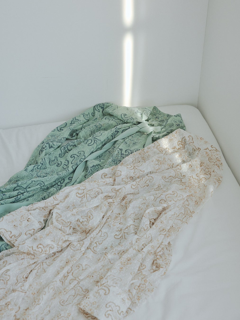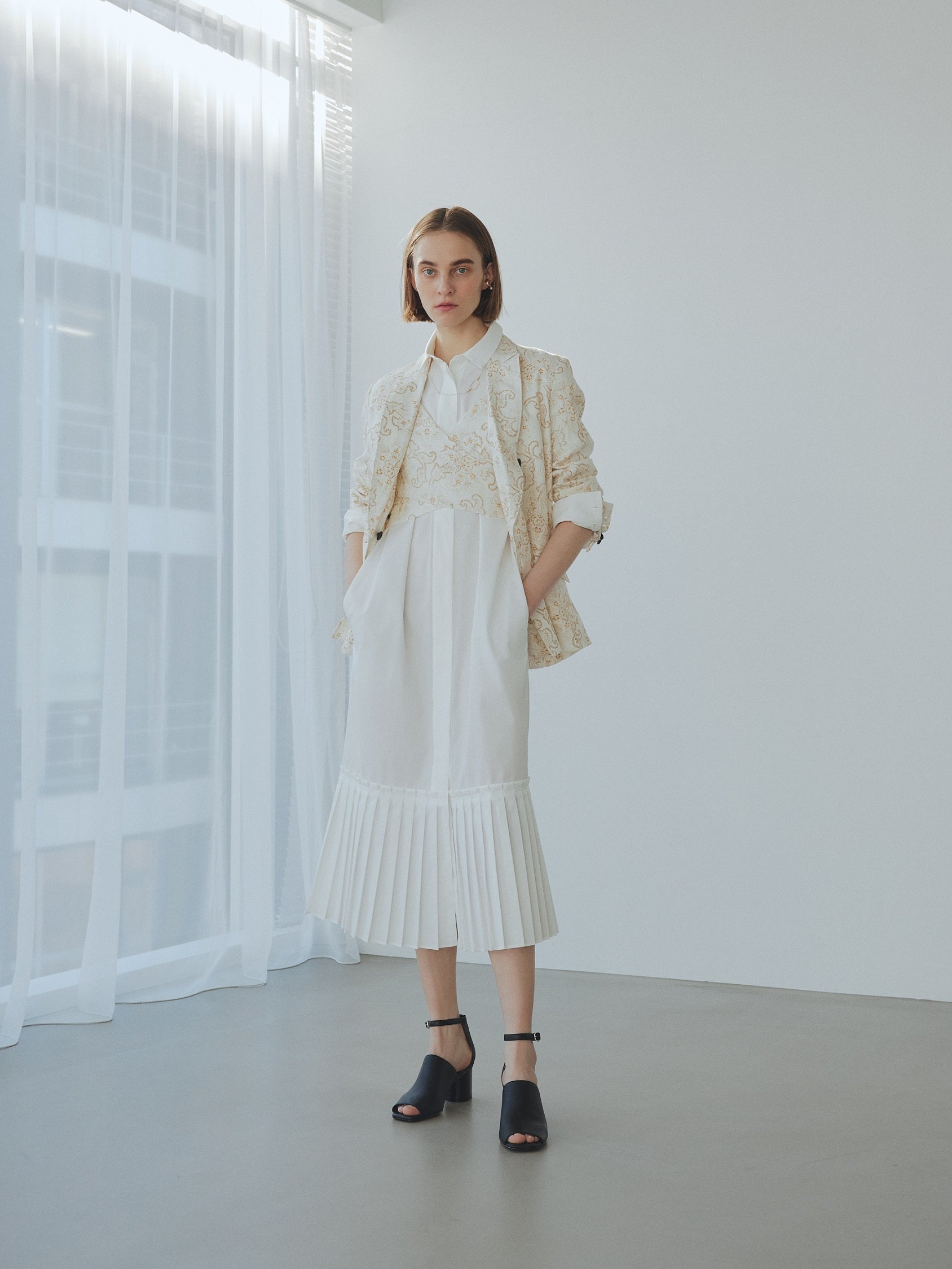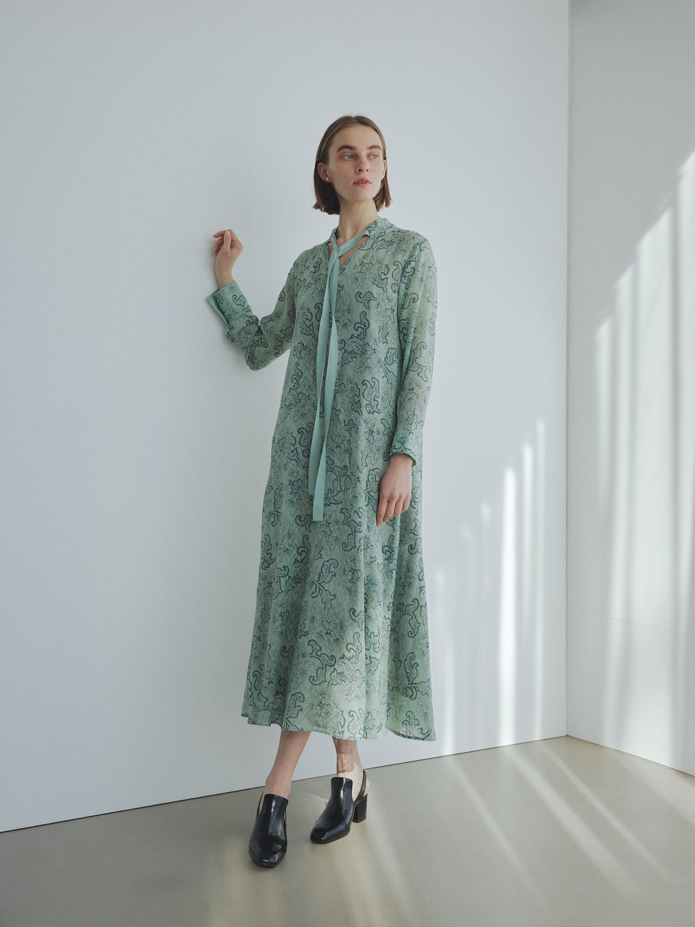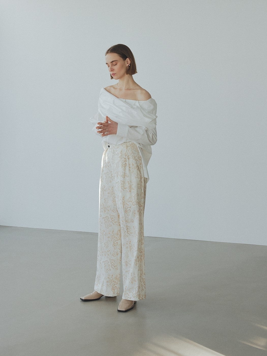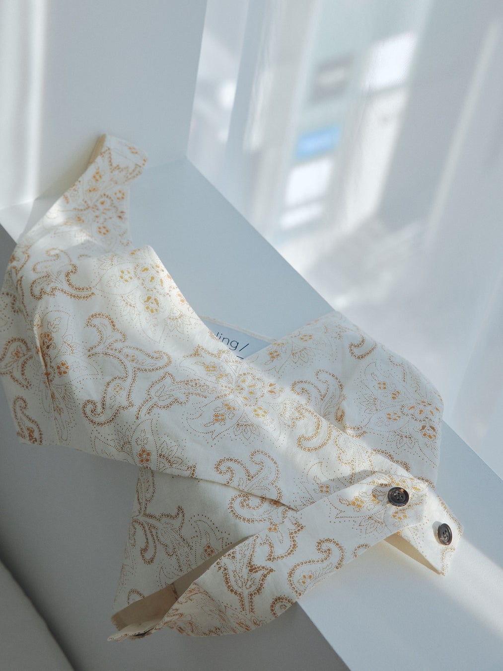 立体感のあるカッティングとフレアの出し方にこだわり、styling/こだわりの残像感のある華やかな一枚に仕上げました。ペイズリーを捺染プリントで落とし込んだ、様々な印象で楽しめる前後2WAYのデザインです。