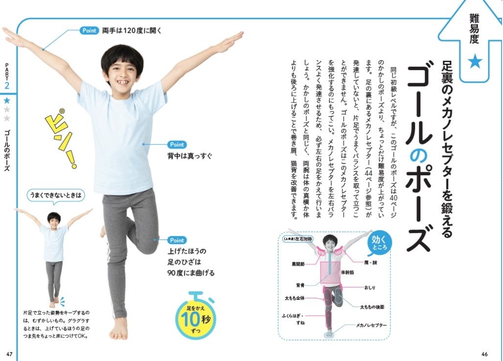 ゲーム中はつねに「猫背」。宿題で机にむかっても「ほお杖&足ブラブラ」。イスに座れば「背もたれにだら~ん」。「子どもの姿勢が悪くて気になる。どんな取り組みをさせたらよいか」という親の相談が増えているそうです。『寝る前10秒 子どもの姿勢ピン!ポーズ』(主婦の友社)では、子ども自らいい姿勢でいられる感覚を身につけ、姿勢の悪さを改善するためのポーズを紹介しています。