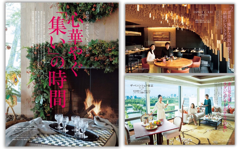 親密な人たちとの年末のひとときを忘れ得ぬものにするためには、集いの場の選び方も大切。華やかなツリーやリースが飾られた自宅で、祝祭気分に満ち溢れるラグジュアリーホテルやレストランで、特別な時間を過ごすためのアイディアと情報をお届けします。