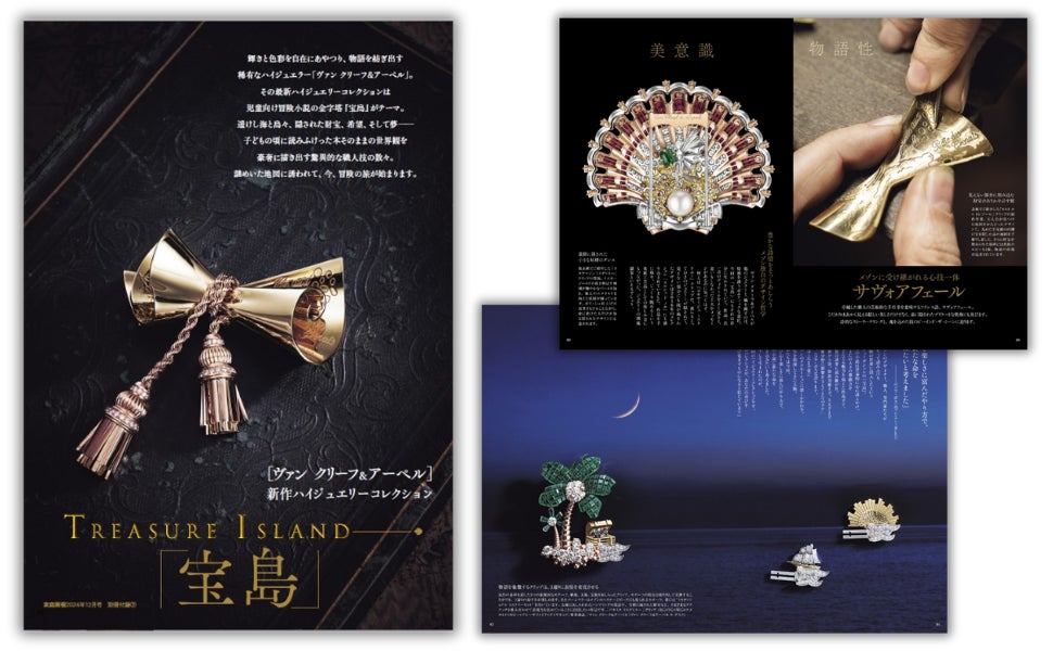 海賊によって隠された財宝を求めて主人公が仲間たちと大海原に乗り出す冒険譚『宝島』からイマジネーションをふくらませた、ヴァン クリーフ&アーペルの新たなハイジュエリーコレクション。デザイナーが思い描いた色彩と造形美、それを見事に具現化する職人たちのサヴォアフェール――。メゾン独自の哲学と技に迫ります。