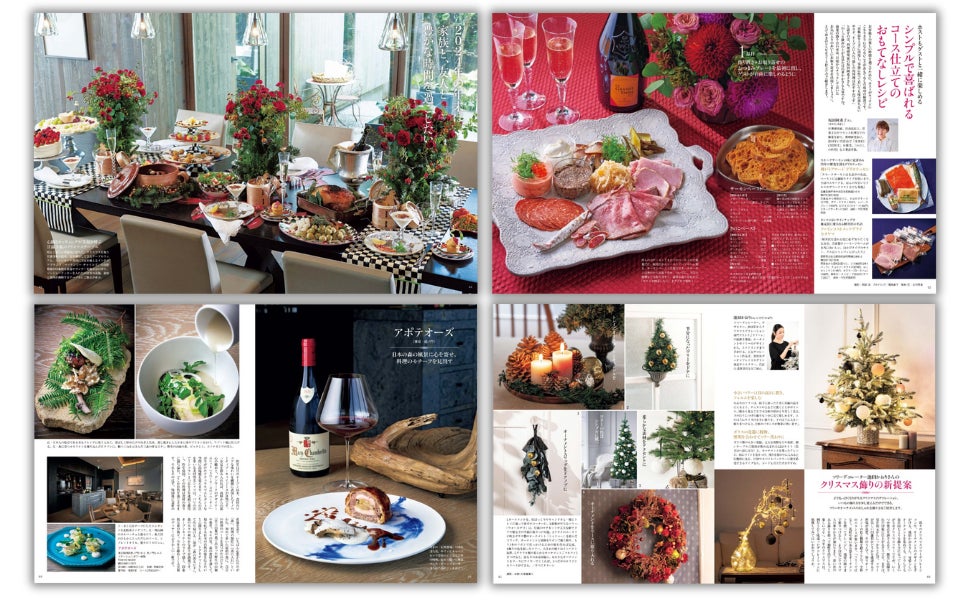 思い出の品々をツリーに飾ったり、クリスマスのモチーフを部屋の随所に取り入れたり…。インテリアデコレーター・甘露寺芳子さんに、家族と過ごす海辺の家でのクリスマスをご案内いただきました。また、人気料理家・坂田阿希子さんによるシンプルで喜ばれるコース仕立てのおもてなしレシピや、人気フローリストにオーダーするフラワーアレンジ、ツリーデコレーターに教わるモダンなクリスマス飾り、個性豊かなアドベントカレンダーなど、自宅を彩るさまざまなアイディアもご紹介します。