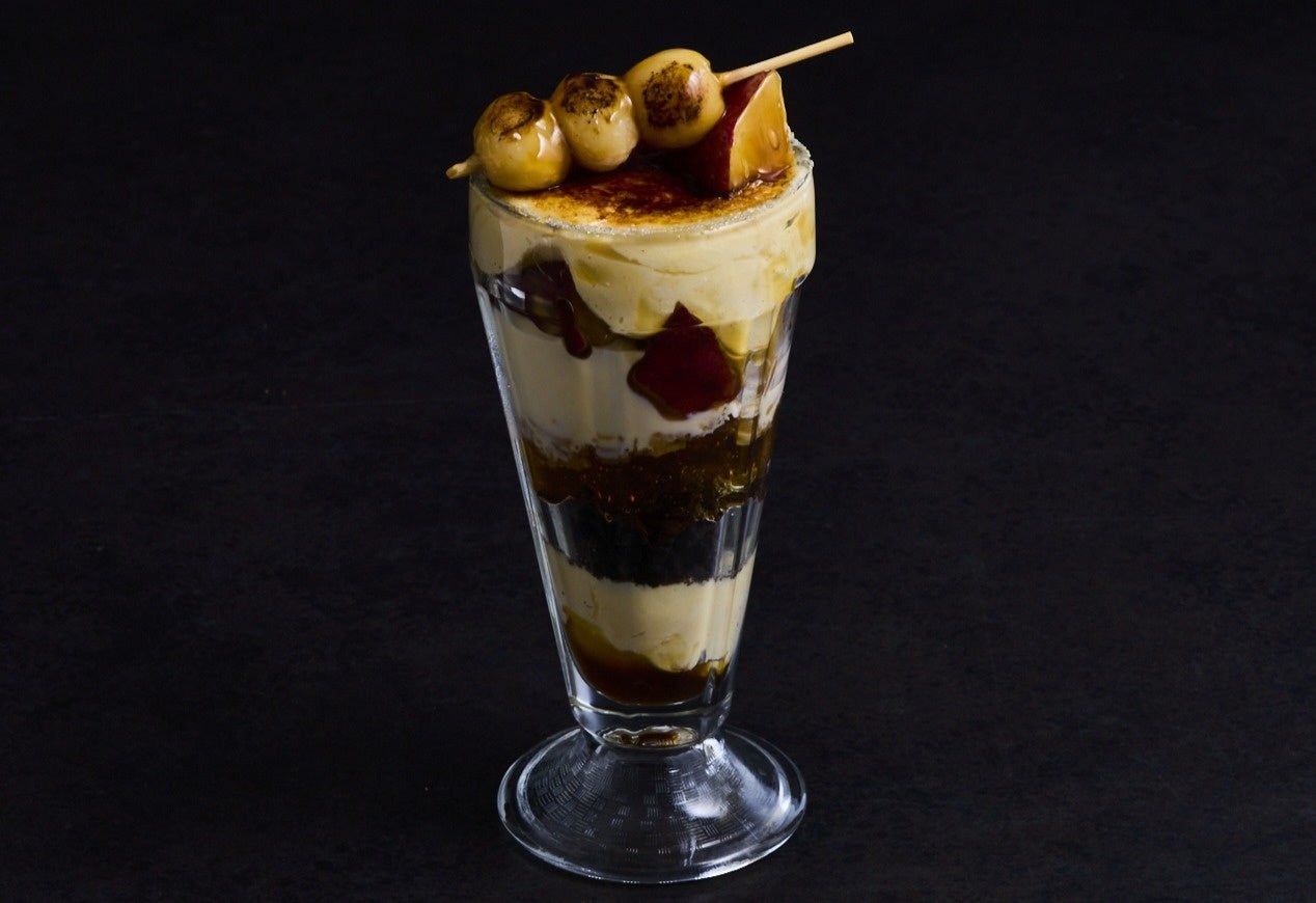 また、スイーツには「さつまブリュレサンデー」が登場。ほろ苦いほうじ茶ゼリーとみたらしの甘じょっぱさが絶妙に組み合わさった贅沢な一品。さつまいもは大学芋、カスタードクリームはブリュレにすることでパリッとしたキャラメル層とクリーミーな中身が楽しめます。