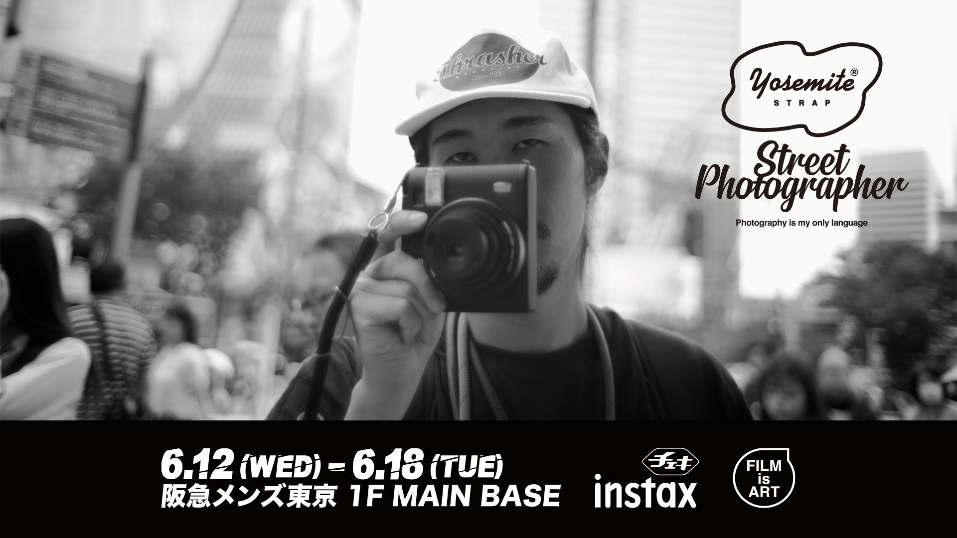 INSTAX MINI 99™+コラボストラップストラップ+フィルムがついた『INSTAX MINI 99™+YOSEMITEコラボストラップセット』限定30セット販売します。現在入手困難なチェキの最上位モデル、INSTAX MINI 99™とYOSEMITE CAMERA HANDストラップがついた、リミテッドエディション(チェキフィルム10枚入り付き)を数量限定で販売します。その他、フィルムの販売フォトグラファーによるチェキの作品の販売も発売。
