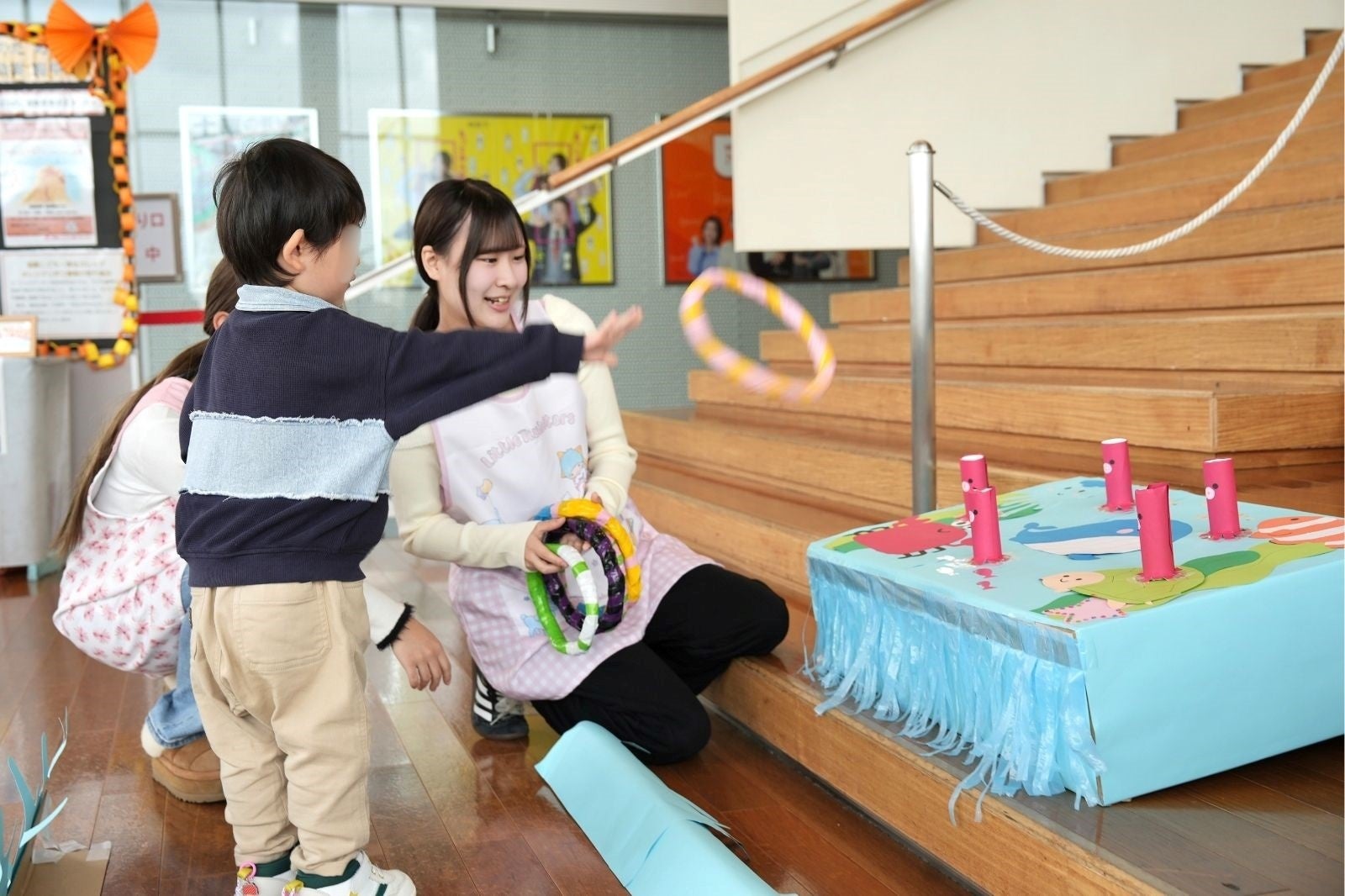 参加した園児からは「お姉さんたちからやさしく教えてもらえてうれしかった」「いろいろな作るものがあって楽しかった」、保護者からは「学生たちが丁寧に優しく教えている姿が印象的でした」「無料なのにやれることがたくさんあって1日楽しめました」などと話していました。