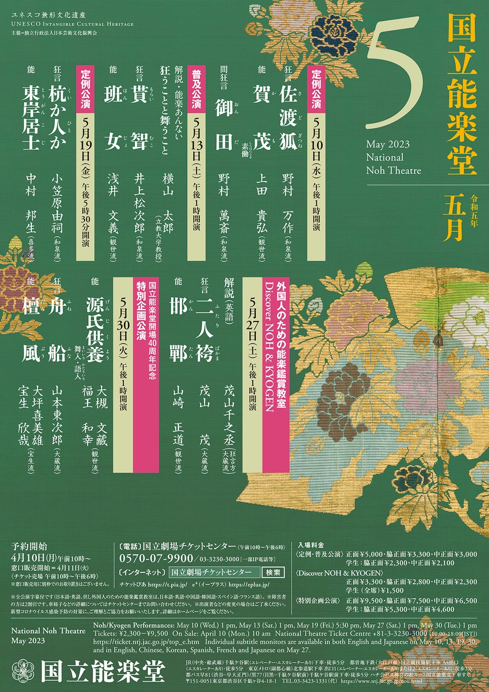 【人間国宝多数出演】国立能楽堂 開場40周年記念特別企画公演「源氏供養・舟船・檀風」ほか 国立能楽堂5月主催公演 カンフェティでチケット発売