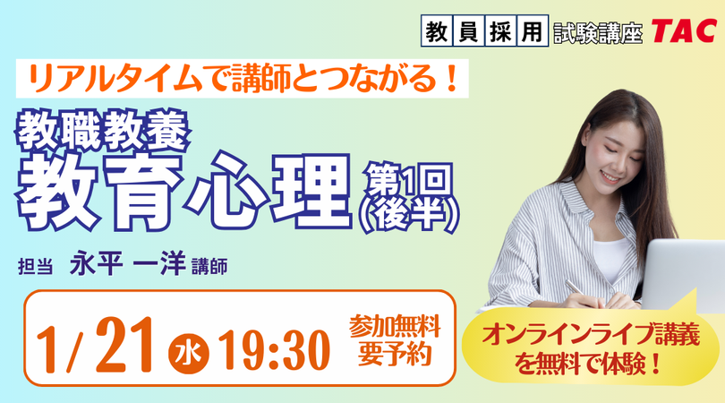 【TAC教員採用試験】オンライン体験講義「教職教養教育心理第1回(後半)」を2026/1/21(水)に開催!
