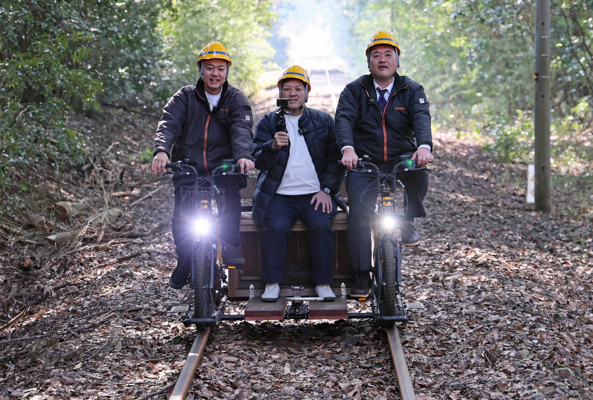 初回シリーズ(計4回配信予定)=写真下=には、人気お笑いコンビ・中川家の礼二さんらとともに「鉄道BIG4」として活躍するお笑いトリオ・ななめ45°の岡安章介さんがゲストとして登場。2020年7月の豪雨で被災し今も一部区間で運休が続くJR肥薩線(熊本県、鹿児島県)、くま川鉄道(熊本県)を訪ね、現状を伝えます。