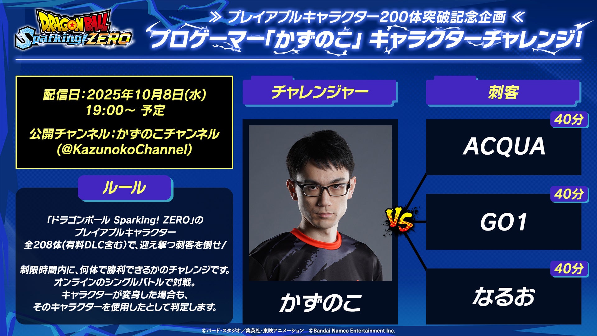 さらに、プレイアブルキャラクターが200体を突破したことを記念したライブ配信、『プロゲーマー「かずのこ」キャラクターチャレンジ』が、かずのこチャンネル(https://www.youtube.com/@KazunokoChannel)にて、2025年10月8日(水) 19:00より、配信決定!