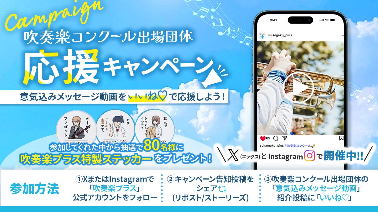 また、意気込みメッセージ動画に「いいね」して応援してくれた皆さまにも、抽選で「特製ステッカー」をプレゼントします(抽選の対象は、①XもしくはInstagramの吹奏楽プラスアカウントをフォロー②XもしくはInstagramで「いいね」の2つを満たした方)。