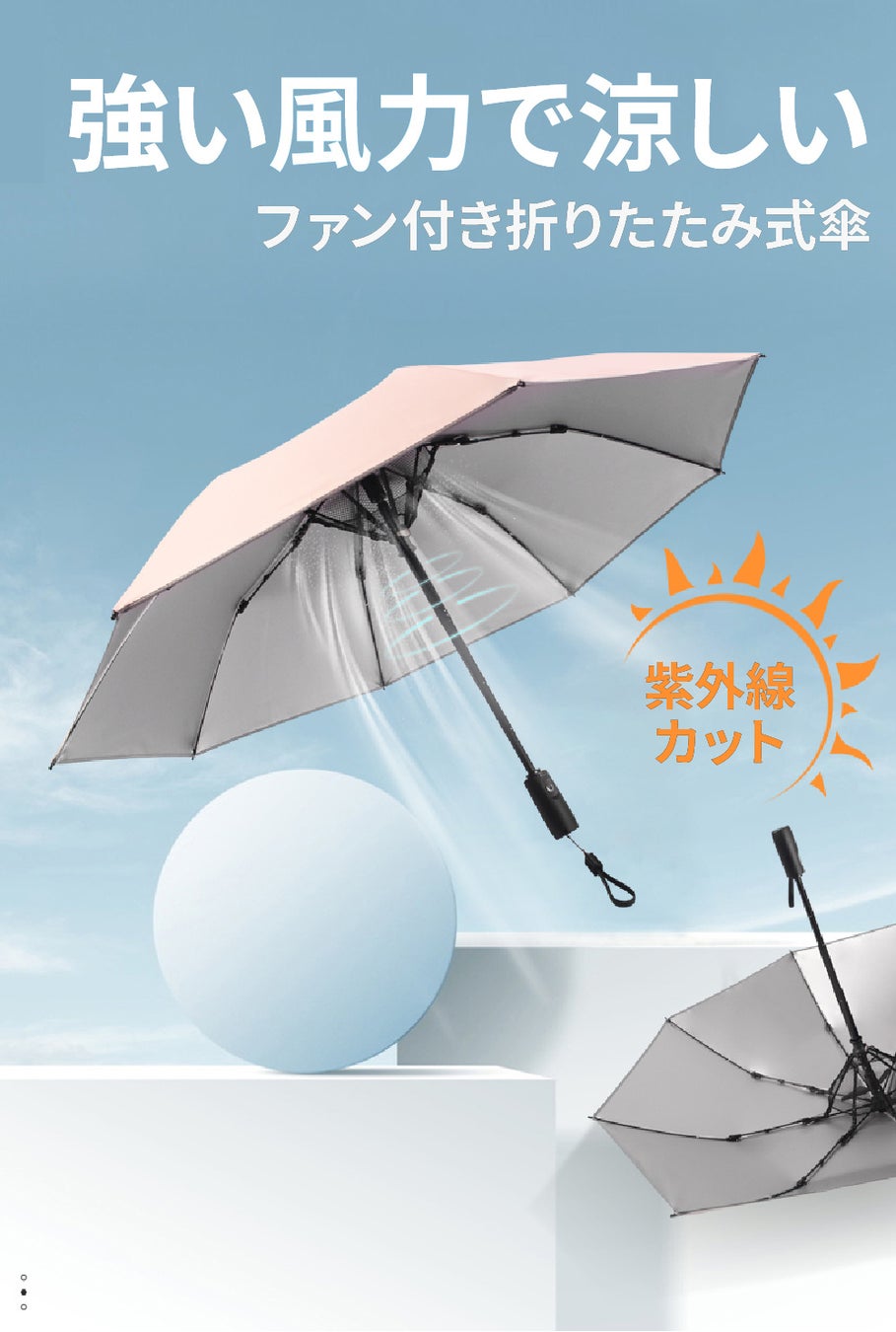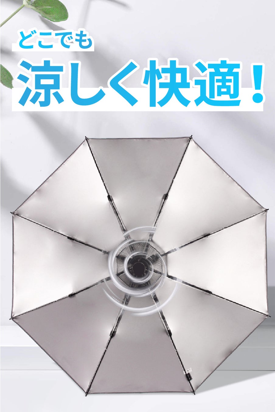 傘の中に溜まった空気を強力にかき混ぜるため、夏のような日差しが強い日でも、小型ファンを動かせば涼しく過ごすことができます!!