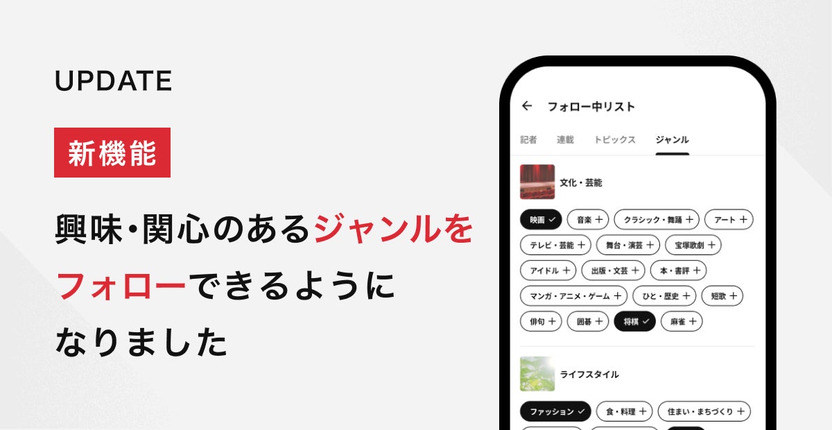 「ジャンルフォロー」で、あなたの興味がもっと深くなる