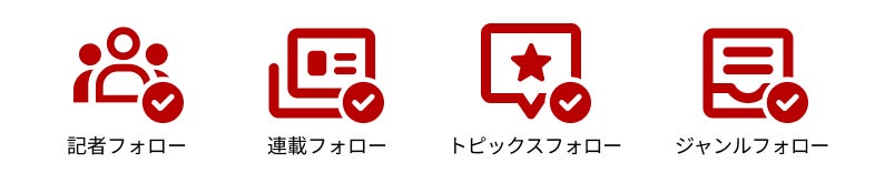朝日新聞は、読者のみなさま一人ひとりのニュース体験をより豊かにするため、これまでも多様なフォロー機能を提供してきました。「記者」や「トピックス」、「連載」、そして今回の「ジャンル」まで、 あなた自身でカスタマイズできる朝日新聞を、この機会にぜひお試しください。フォローしたコンテンツは、アプリの「フォロー中」タブでまとめて読むことができます。