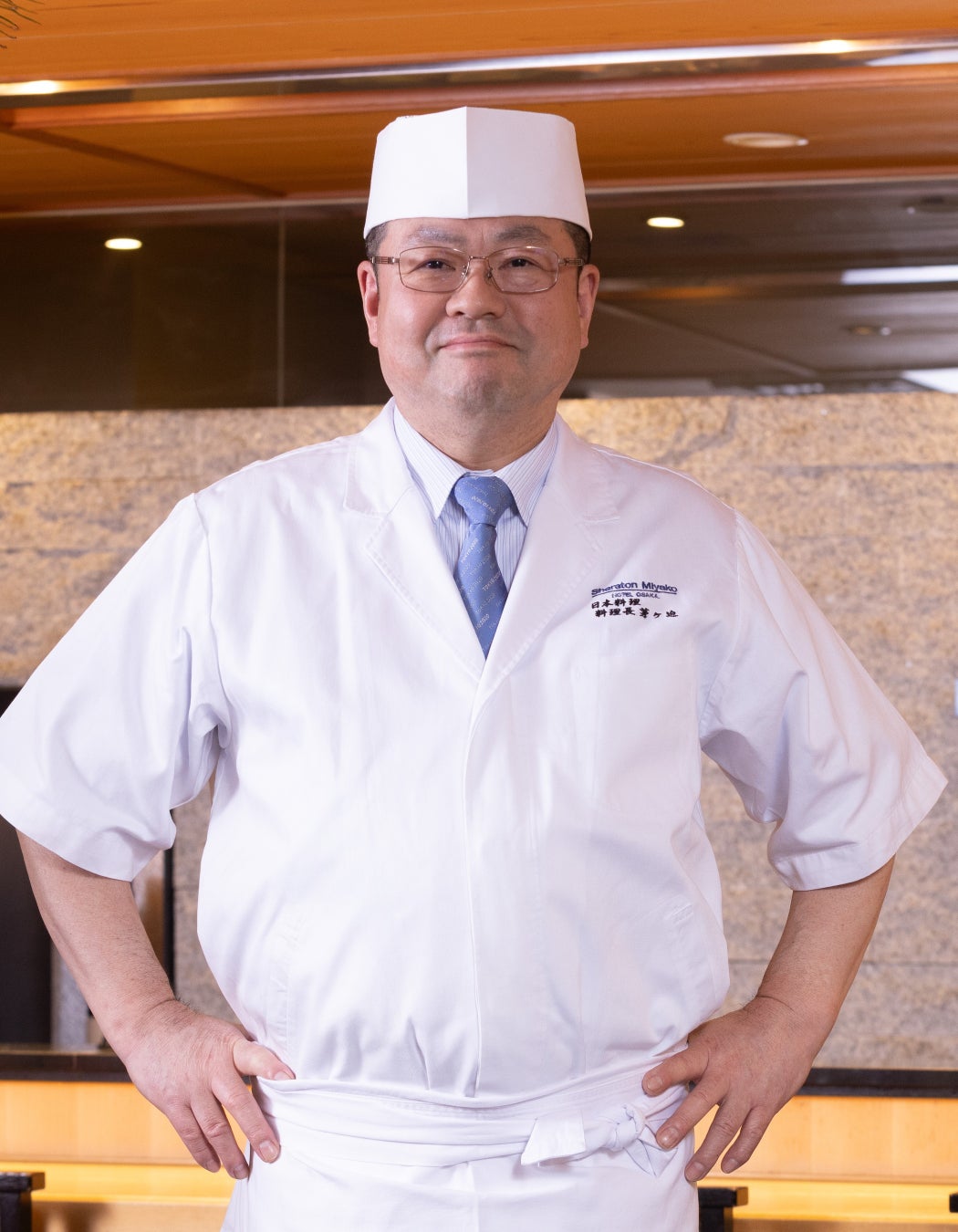 1975年4月 都ホテル京都(現 ウェスティン都ホテル京都)京料理「浜作」に入社。1985年9月 都ホテル大阪(現シェラトン都ホテル大阪)開業に伴い入社し、日本料理「都」を担当。2004年4月 日本料理 料理長に就任。日本調理師連合会より師範状を授与される。2010年 山蔭流包丁道師範取得。2015年4月 志摩観光ホテル 和食総料理長を兼務し、5月26日・27日に開催された「G7伊勢志摩サミット2016」のワーキング・ランチを担当。