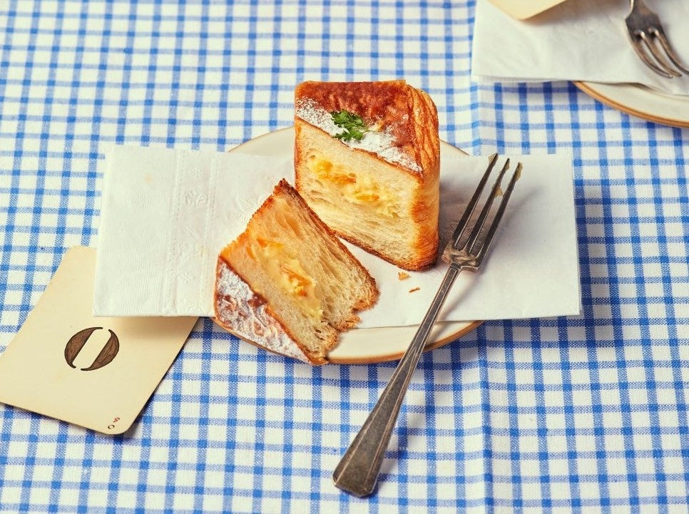 何層にも重なった生地の中には、カスタードクリームとオレンジマーマレード。