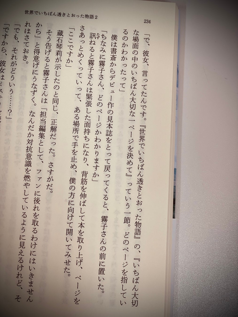 課題文『世界でいちばん透きとおった物語』と問題文『世界でいちばん透きとおった物語2』をお読みいただいた読者の方の中で、このクイズ、正解のページ数が「わかった!」という方、ぜひ回答を新潮文庫nex公式XにDMにてお送りください。「正解」か「不正解」か、返信でお答えさせていただきます。正解された方も、くれぐれも正答は「ネタバレ厳禁」ご協力をお願いいたします。