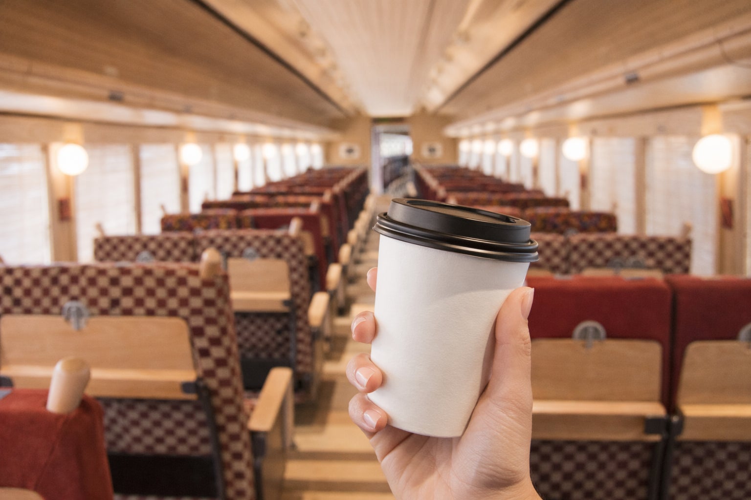 ⑤富士山ビュー特急 ホットコーヒ―350円から200円へ割引(富士山ビュー特急車内)