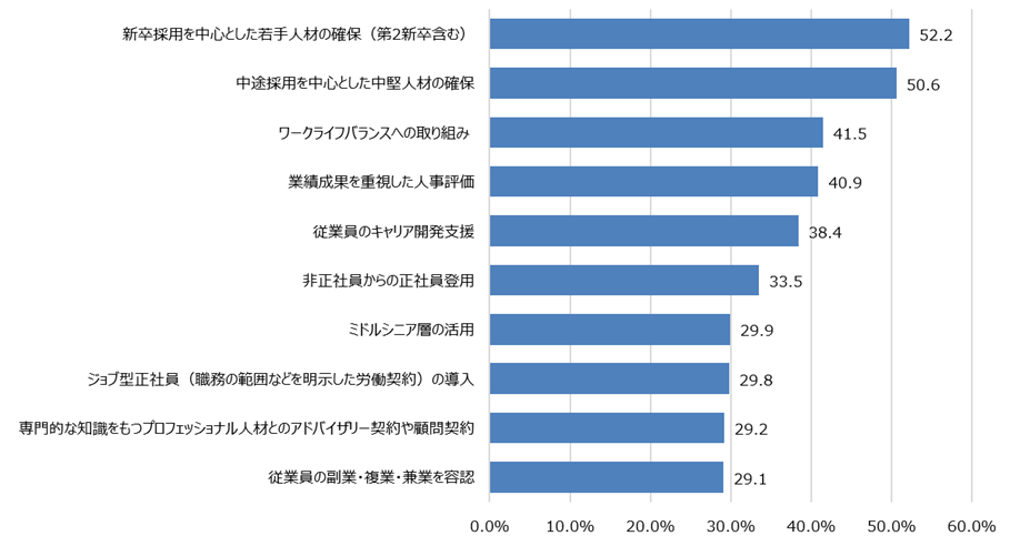 【図3】2030年までに重要性が高まると思う人事施策(上位10項目)