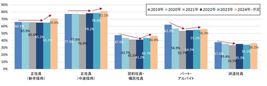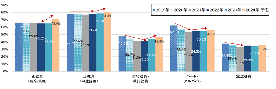 【図1】<雇用形態別>2019年~2023年の採用実績と2024年の採用予定