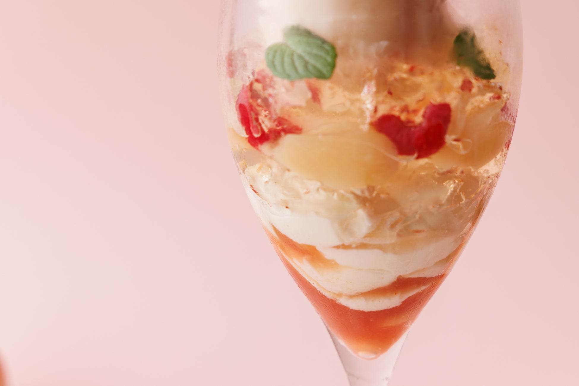 「もものミルフィーユパフェ」は、甘く香り高い国産の白桃を使用し、見た目も味わいも華やかな夏季限定のデザートです。スライスした桃とカスタードクリームを挟んだサクサクのパイを中心に桃のソルベ、ヴェルヴェーヌのジュレ、サワークリームのパンナコッタをミルフィーユ仕立てに。多彩な素材が織りなす風味と食感のコントラストをひとくちごとにお楽しみいただけます。グラスの上にはキャラメリゼしたフレッシュでジューシーな桃を花のように盛り付けることで華やかでフォトジェニックな一品に仕上げました。さらに、別添えの「ローズ香る、桃とフランボワーズソース」は、上品な酸味と華やかな香りがアクセントとなり味の変化もお楽しみいただけます。季節の恵みを凝縮した、夏のご褒美パフェです。