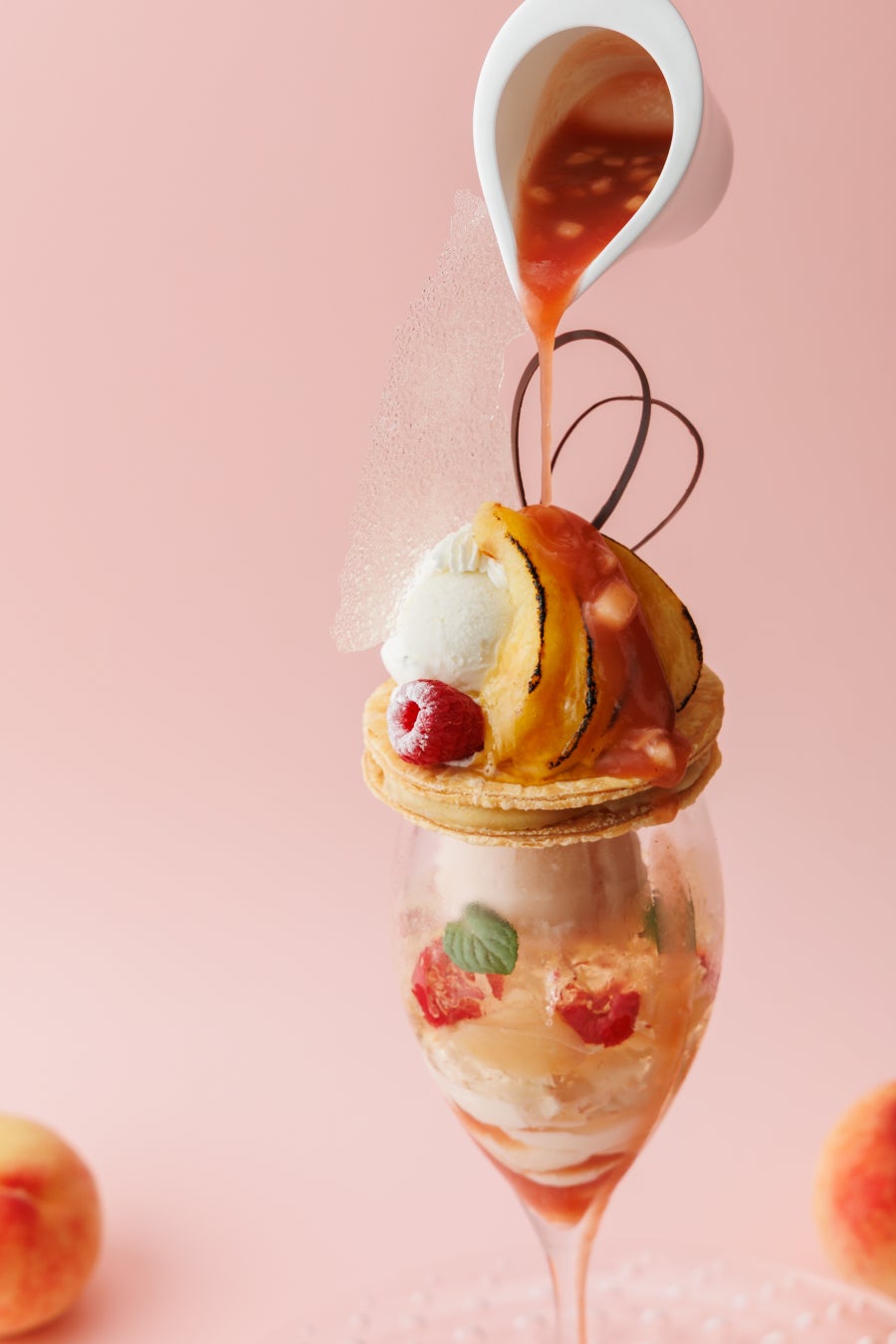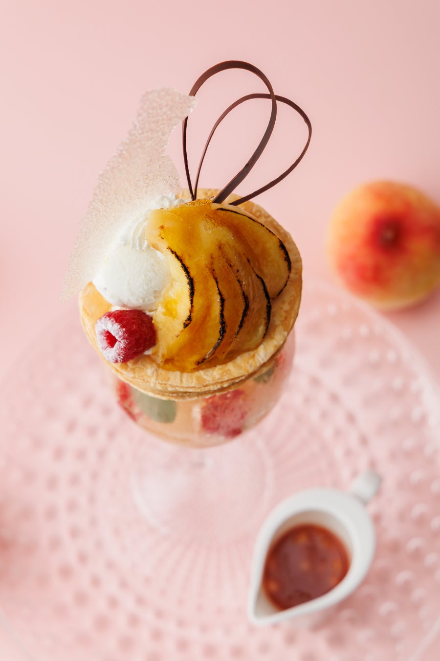 瑞々しい桃とサクサクのパイが織りなす、夏のご褒美パフェ