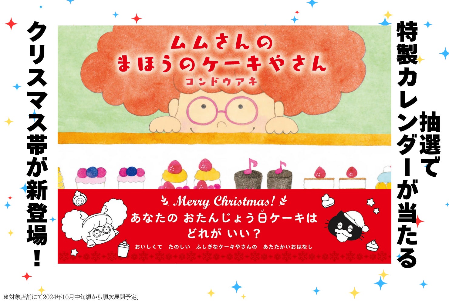 かわいいケーキが沢山!大人気絵本『ムムさんのまほうのケーキやさん』クリスマス帯が登場。購入者特典として「ぬりえポストカード」をプレゼント!抽選でカレンダーが当たるプレゼントキャンペーンの実施も決定!
